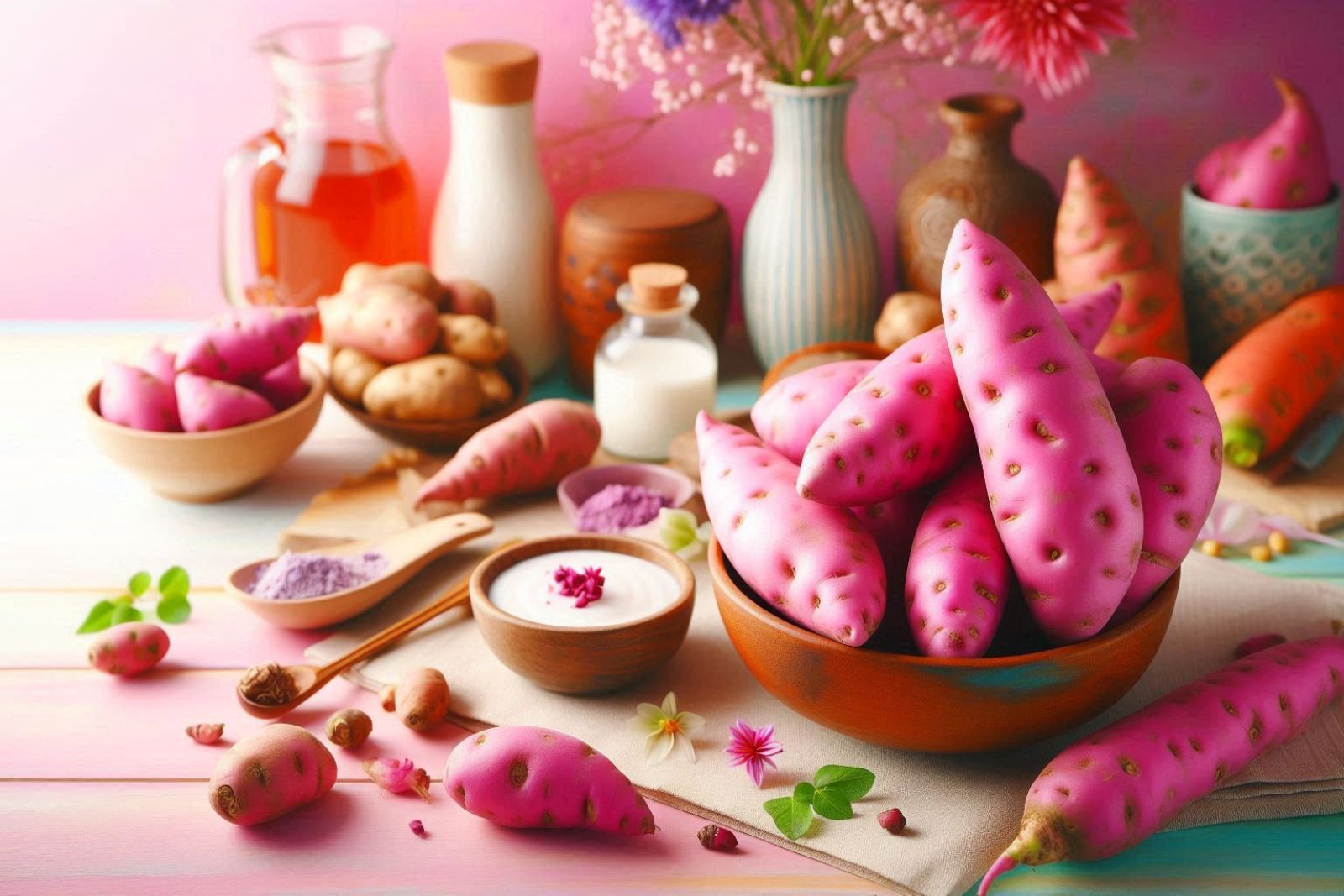 - Vitamina A: A batata-doce é uma das melhores fontes de betacaroteno, que o corpo converte em vitamina A, essencial para a visão, sistema imunológico e saúde da pele.