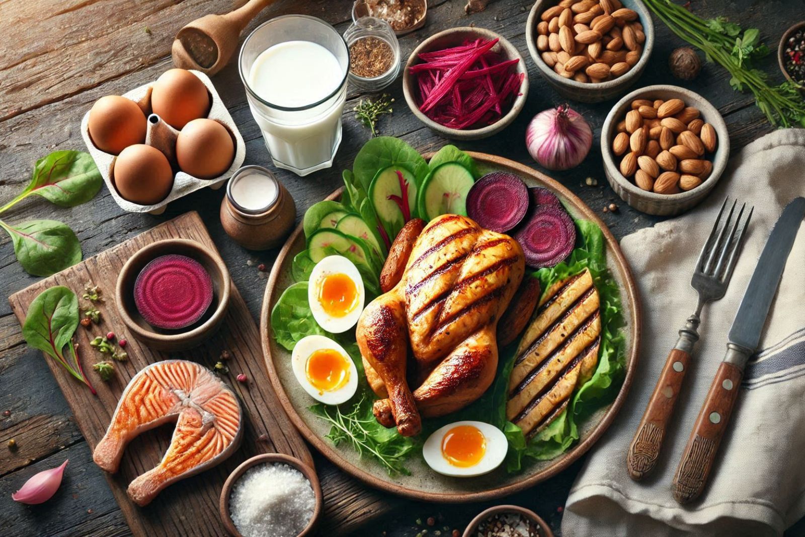 Ovos: são uma fonte excelente de proteína de alto valor biológico, com todos os aminoácidos essenciais. A albumina, presente na clara, é particularmente importante para a síntese muscular e recuperação após os treinos.