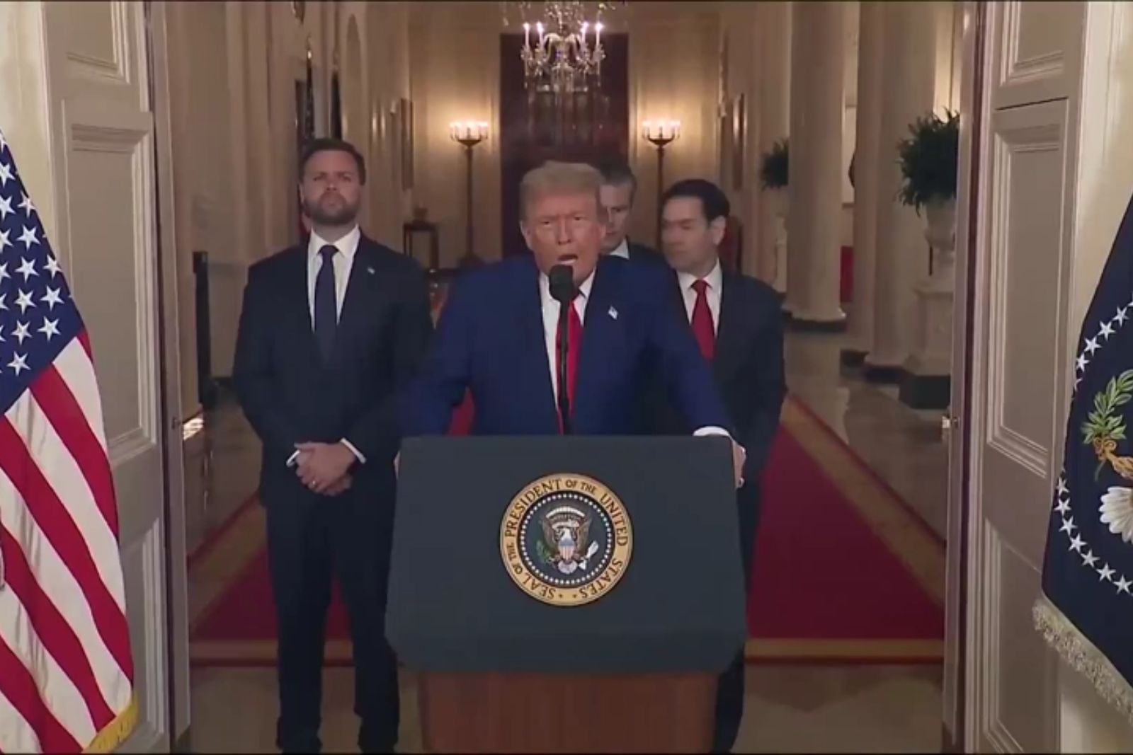 Em um discurso televisionado, Trump afirmou que as instalações nucleares foram “completa e totalmente destruídas”. Ele alertou Teerã sobre possíveis retaliações, enfatizando que o país “deve fazer a paz agora”; caso contrário, “os ataques futuros serão muito maiores”.